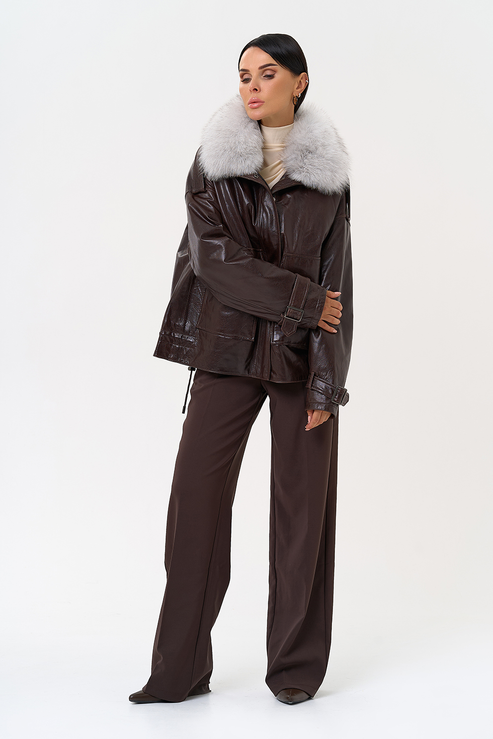 Тип ворота - отложной воротник, отделка песец