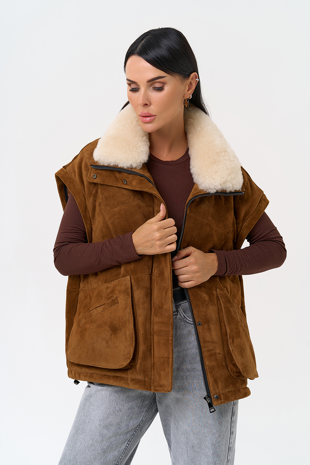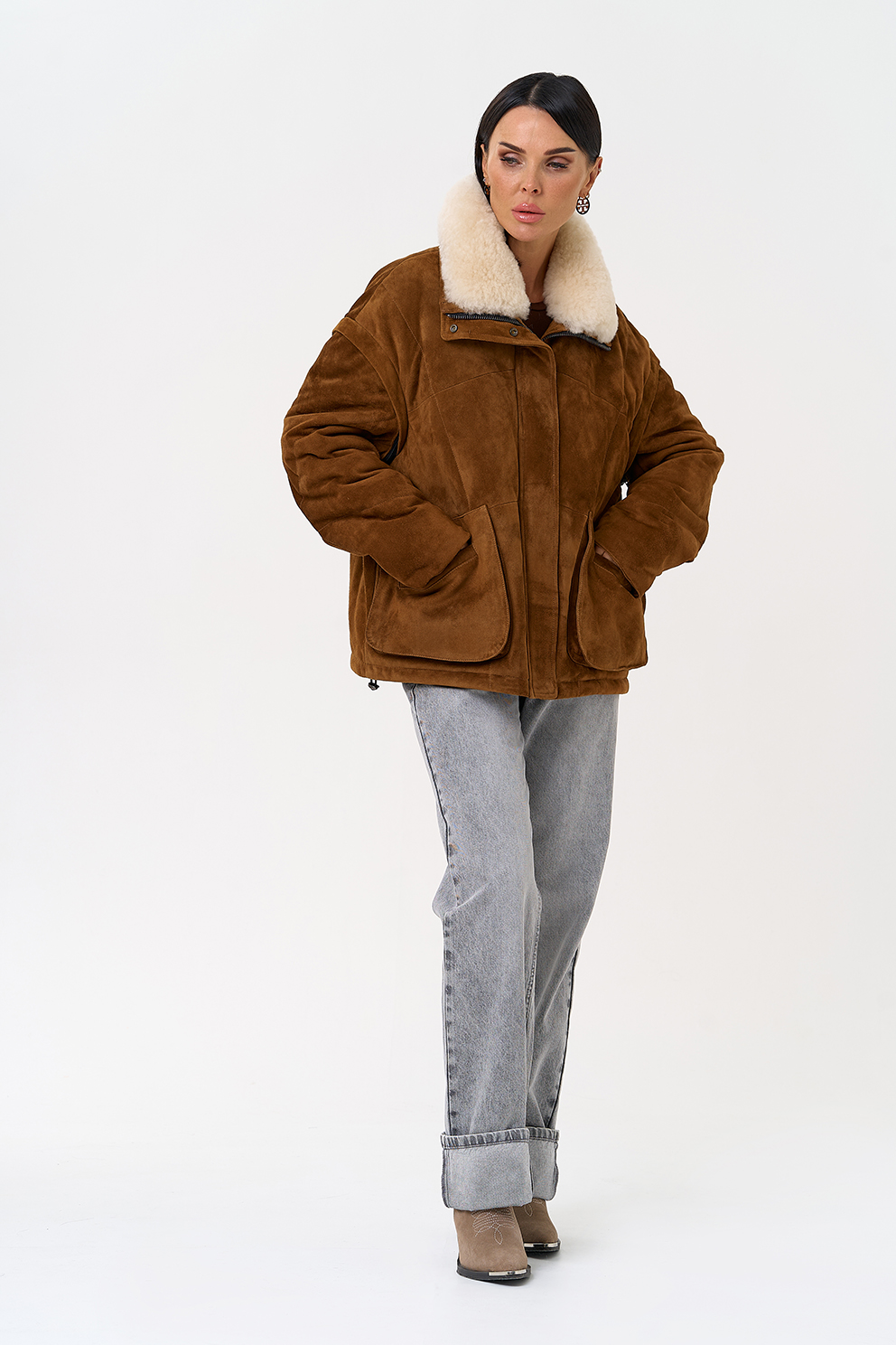 Тип ворота - отложной воротник, отделка овчина