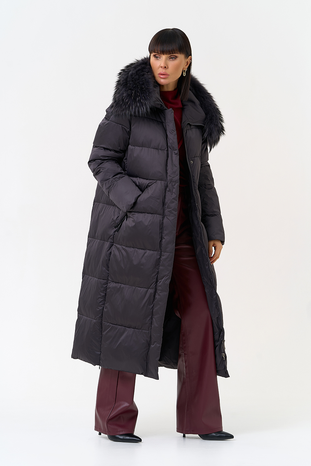 Отделка воротника - чернобурка, цвет фиолетовый